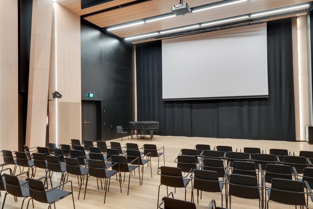 – 416-paikkainen konsertti-, kulttuuri- ja juhlasali. Permannolla 342 ja parvella 74 paikkaa.
